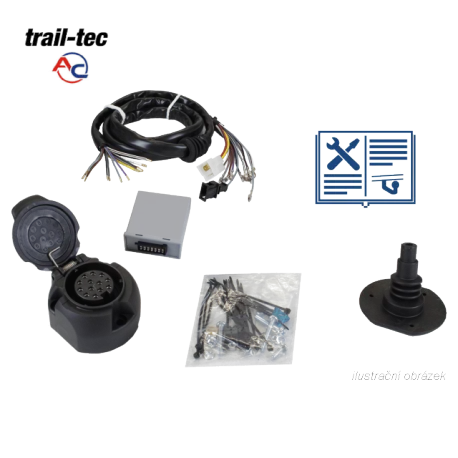 Typová 13ti pinová elektrosada výrobce AC / trail-tec s bezkonkurenční cenou a perfektní spolehlivostí. Typové elektropřípojky se běžně zapojují do předem připravených konektorů na vozidle a po nakódování komunikují s elektronickými systémy vozidla. Zda přípojka komunikuje po datové sběrnici, zda obsluhuje kontrolu prasklých žárovek, nebo zda je nutné programování vozu pro její správnou funkčnost, je patrné z parametrů (CAN-Bus, Check Control, Kódování...). Typové přípojky rovněž ve většině případů odpojují originální parkovací senzory (viz parametr Odpojení PDC). Doba montáže se pohybuje v rozmezí 60-90min. Výrobce: AC, Polsko