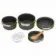 Sada je tvořena kotlíky s rozměry 17 x 8,5 cm; 14,5 x 8 cm a pánvičkami, které mohou plnit i funkci pokličky, nebo kastrolu o rozměrech 18 x 4,5 cm; 15 x 4 cm.