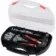 Kleště jsou spolu se spojovacím materiálem uspořádány v plastovém kufru.