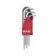 Sada 9 ks delších imbusových klíčů běžných rozměrů, uložených v přehledném, plastovém držáku.